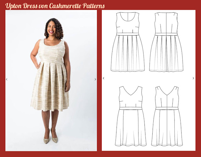 Das erste Kleid wäre das Upton Dress von Cashmerette Patterns. Hier gefällt mir vor allem die Variante mit den vielen Falten gut. Es gäbe auch noch eine Ärmelergänzung. UND: es gab einen ausführlichen Sew along, der würde mir sicherlich helfen. Das Kleid wird nämlich mit "Lining" genäht und da hätte ich gern ein paar genauere Erklärungen zu.
